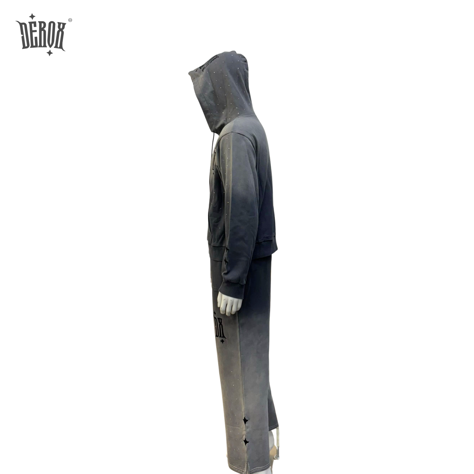 - Logo DEROX stampato sul cappuccio e sul retro dei pantaloni